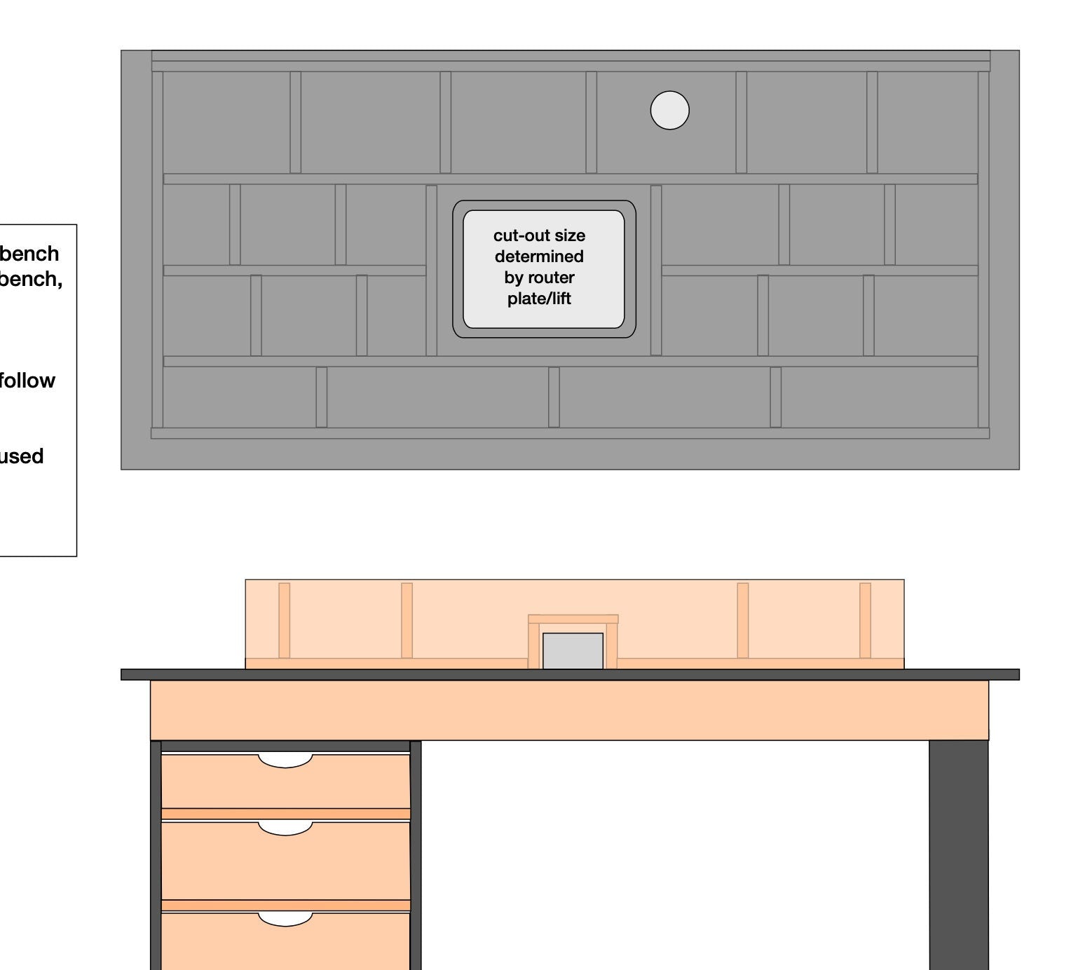 This is a set of plans for a torsion box style workbench - I made this as a router bench, though obviously you don't have to include the cut-out for a router if you're using it as a regular bench.