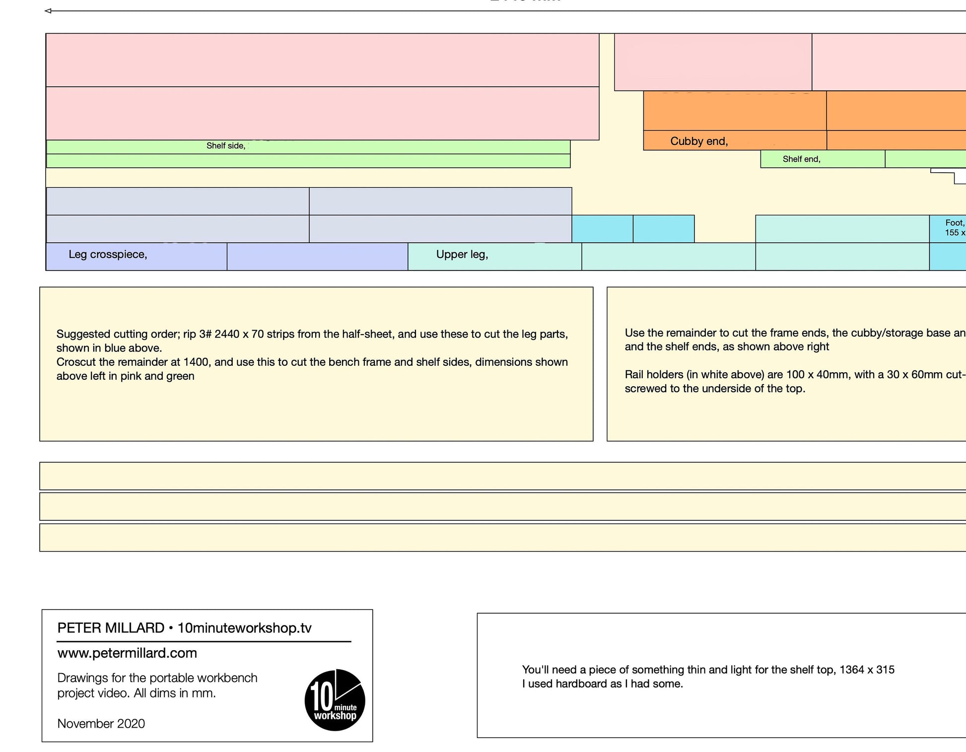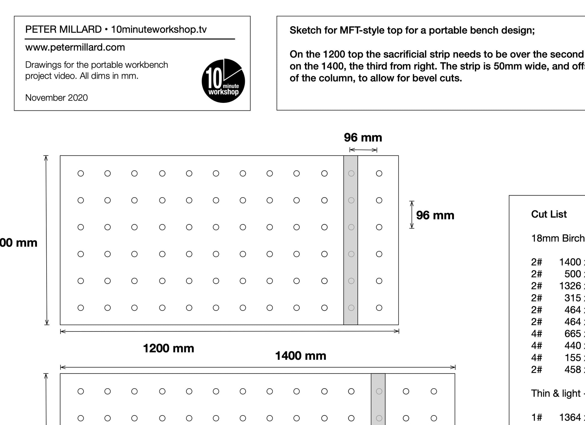These are a set of plans for my portable bench build, and include a full cutlist, links to hardware that I used, and offer codes for discounts on additional hardware that may prove useful.