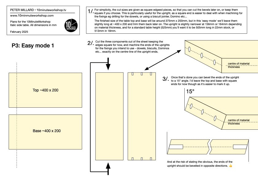 These plans have a few variations on them - two material thicknesses in three heights - so please read them carefully, and be sure to also watch the original public-facing video on YouTube here: